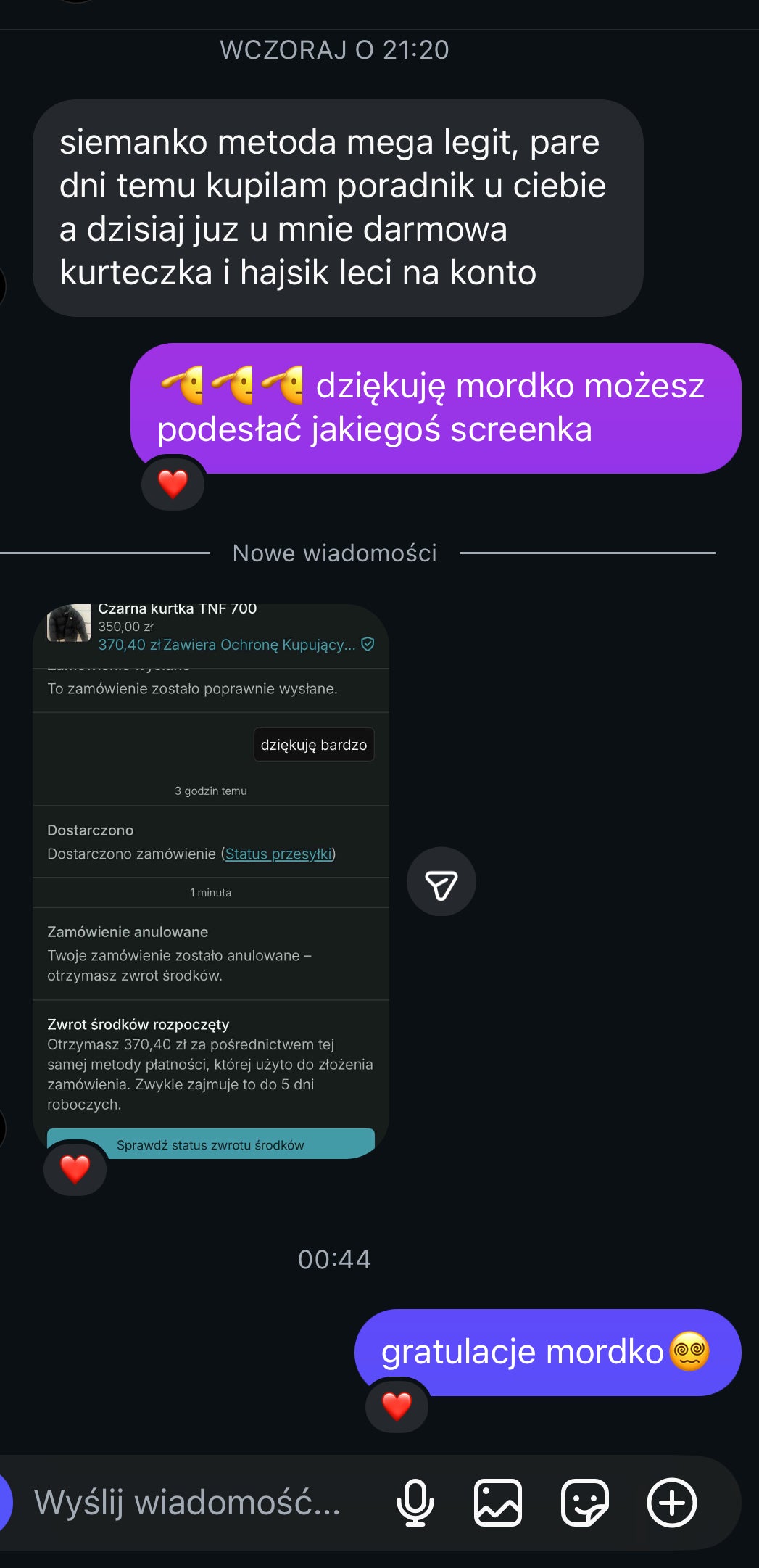 W strategii znajdziesz opisaną od A do Z moją autorską metodę na DARMOWE RZECZY (buty, kurtki, bluzy, torebki) dosłownie wszystko możesz mieć ZA DARMO, i co najważniejsze metoda jest w 100% legalna, moi klienci ją uwielbiają. - Kontakt ze mną 24/7 po zakupie -