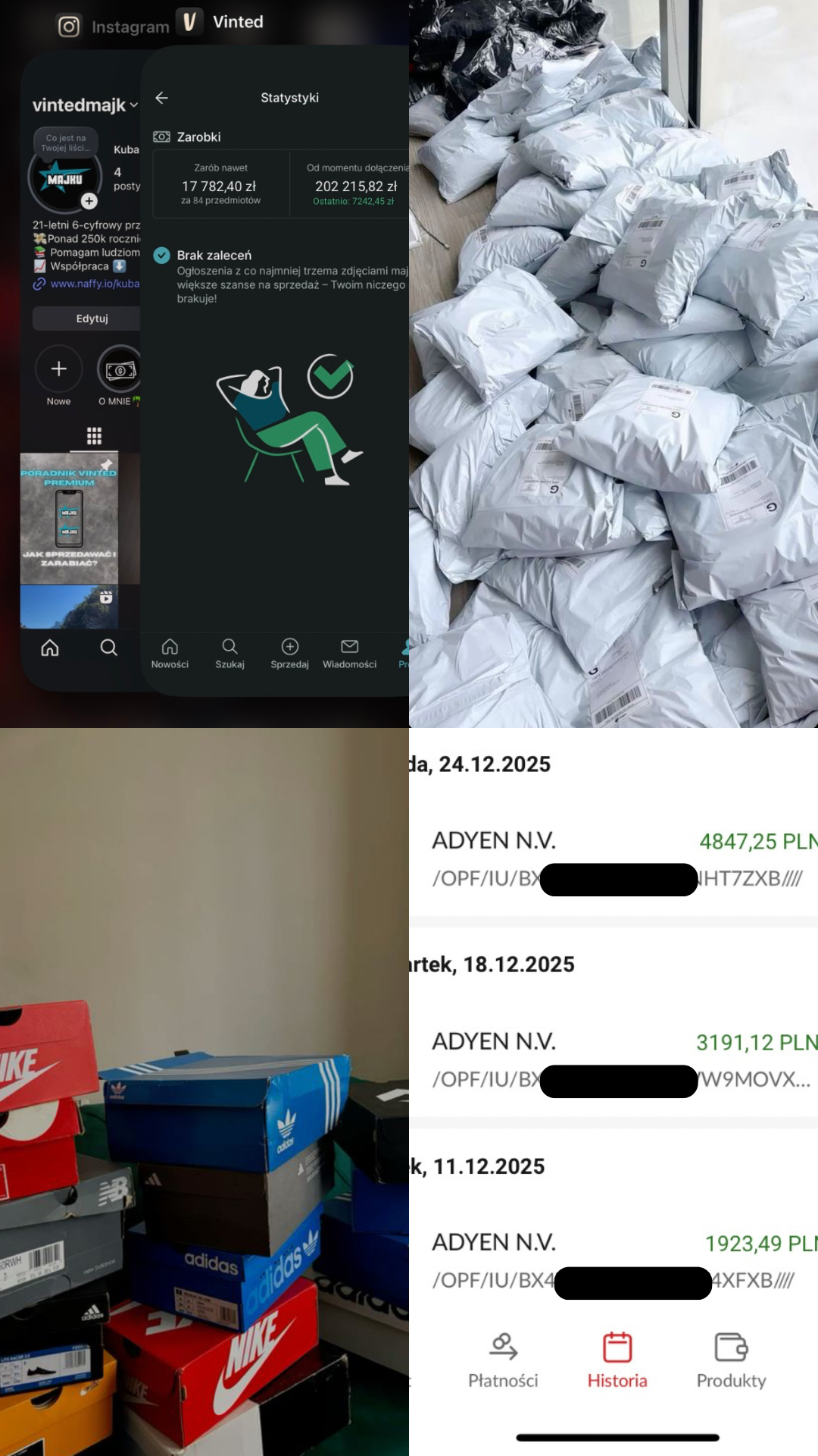 W mojej strategii znajdziesz moją główną metodę, z której sam zarabiam pieniądze od ponad 3 lat , czyli sprzedaż na Vinted. Pokaże Ci dokładnie to co wypracowałem przez 3 lata codziennej sprzedaży. Zero lania wody, tylko to co faktycznie działa.